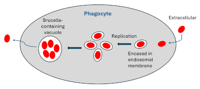 A critically important feature of Brucella is their facultative, intracellular lifestyle, meaning that the can replicate and survive both outside and within cells. Phagocytic cells (macrophages, monocytes, dendritic cells) are the major site for replication and persistence of Brucella within infected cells. Inside such cells, Brucella are further shielded inside what are called Brucella-containing vacuoles. This intracellular localization is important to pathogenesis because living inside phagocytic cells isolates the bacteria from the immune system, allows long-term persistence and chronic infections, and makes treatment with antibiotics difficult.