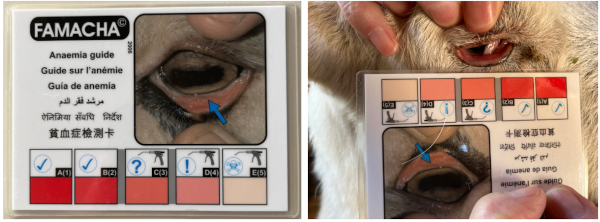 बार्बर पोल परजीबीको संक्रमण धेरै गम्भीर अवस्थामा पुगेको भए जनावरको आँखाको भित्री ढकनी वा मुखभित्र गिजा हेर्दा, रगतको कमीका कारण ती भागहरू धेरै फिका भएको सजिलै देख्न सकिन्छ । यसरी हेरेर पनि रोग पहिचान गर्न सकिन्छ। तर अझै राम्रोसँग रगतको कमी (रक्तअल्पता) नाप्न फमाचा कार्ड( FAMACHA card) भन्ने विशेष कार्ड प्रयोग गर्दा धेरै सजिलो हुन्छ| फामाचा कार्डमा रातो रंगको फरक फरक मात्रा देखाइएको हुन्छ| जस्तै: स्वस्थ जनावरको आँखाको भित्री ढकनीको रंग गाढा रातो देखाइएको हुन्छ। यदि तिनको भित्री ढकनीको रंग लगभग सेतो देखिन्छ भने तिनको शरीरमा रगत धेरै घटेको छ भन्ने संकेत गर्छ। यो फमाचा कार्ड प्रयोग गर्न, जनावरको आँखाको तल्लो ढकनी तलतिर तानेर त्यसको रंगलाई कार्डमा देखाइएका रंगसँग तुलना गर्नुपर्छ। यदि ढकनीको रंग फिका देखिन्छ भने जनावरलाई आन्तरिक परजीबी नाश गर्ने औषधि दिनुपर्छ। यदि त्यो जनावरको आँखाको भित्री ढकनीको रंग धेरै फिका देखिन्छ र “बोतल ज” (च्यापु सुन्निएको अवस्था) पनि छ भने, उसलाई आन्तरिक परजीबी नाश गर्ने औषधिको साथै तरल पदार्थ प्रयोग गरि उपचार गर्नुपर्छ|